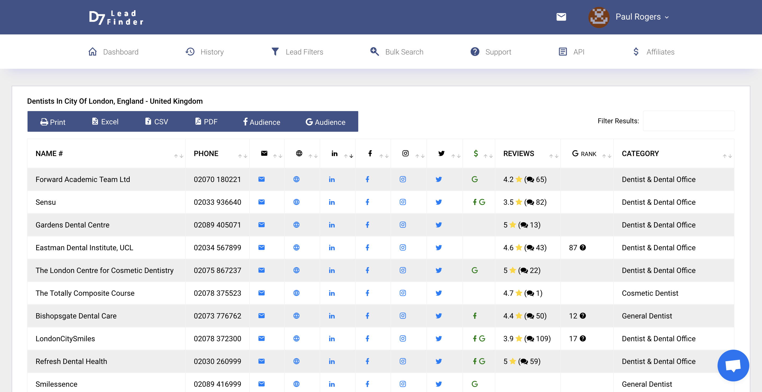- Get review scores for each lead from Yelp, Facebook and Google New Feature